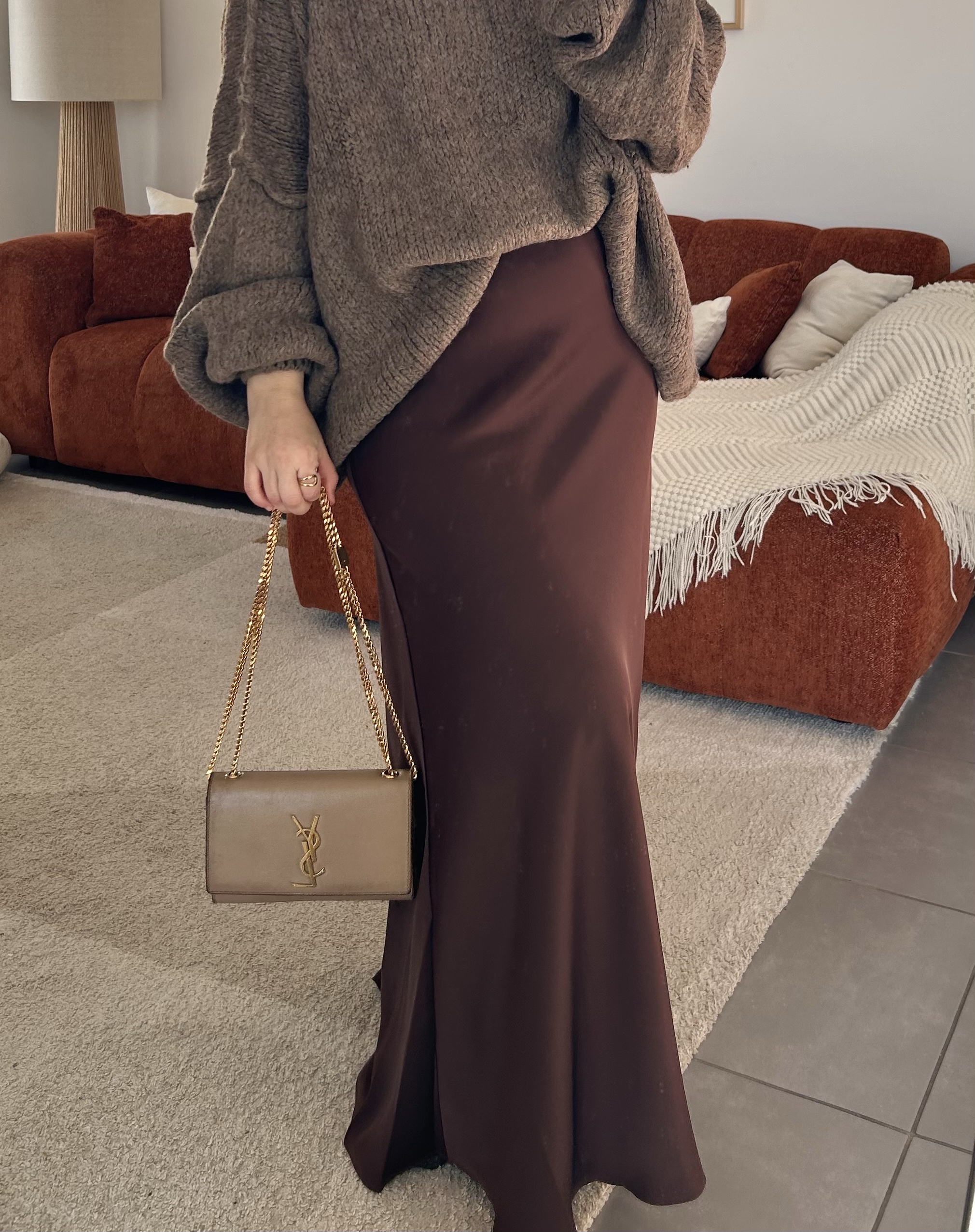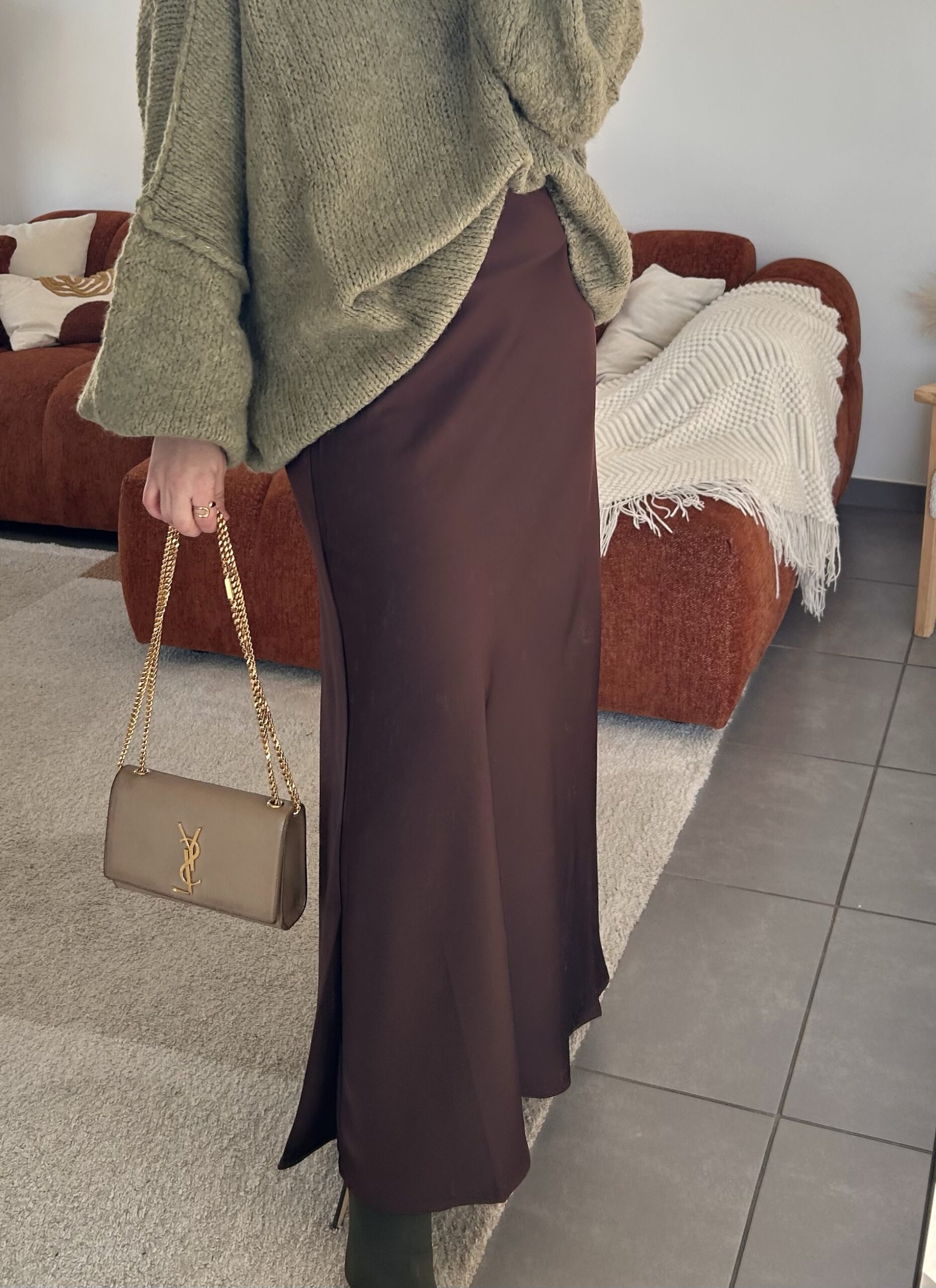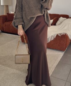 Élégante et fluide, notre jupe satinée est une pièce incontournable pour une allure chic et féminine. Sa coupe évasée épouse délicatement la silhouette tout en offrant un tombé fluide et raffiné. Confectionnée dans un satin doux et légèrement brillant, elle apporte une touche de sophistication à vos tenues du quotidien comme de soirée.