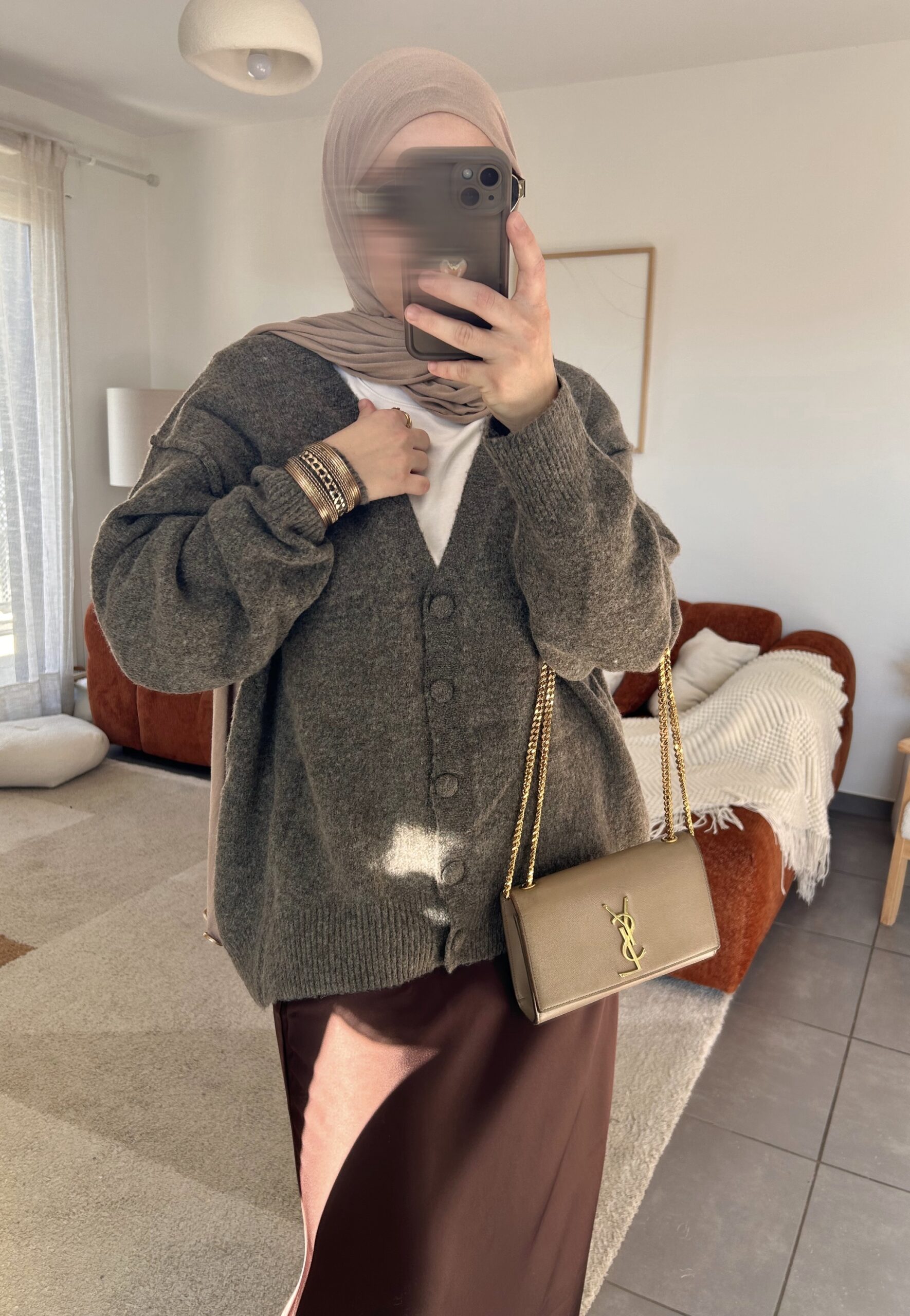 Cardigan Col V Taupe – Élégance décontractée et douceur assurée 🤎