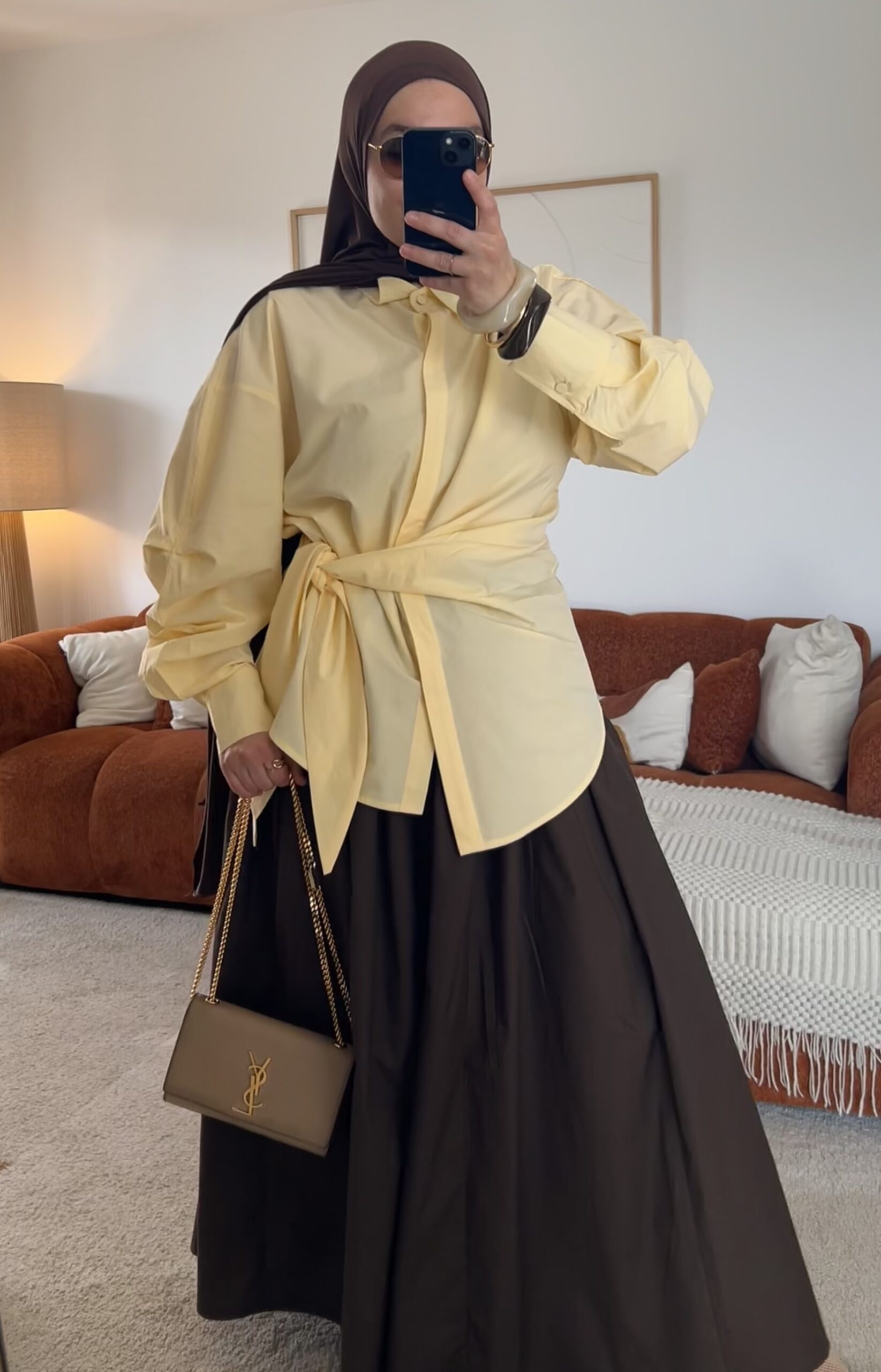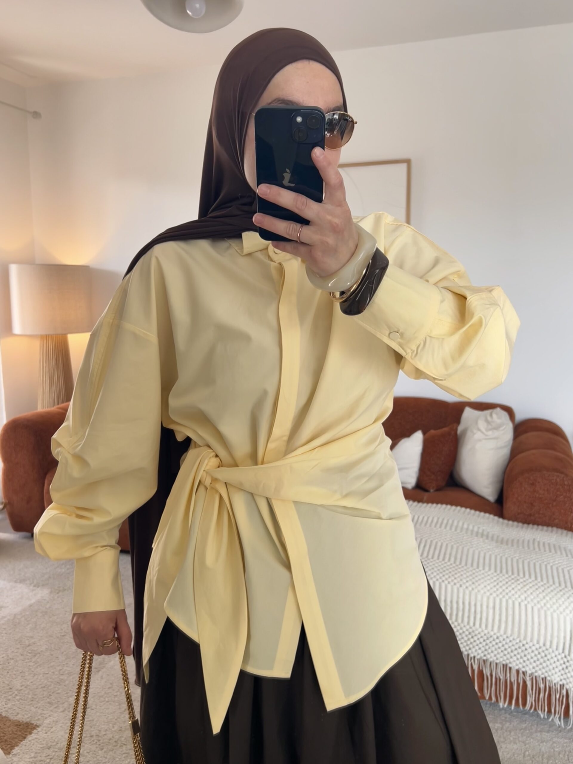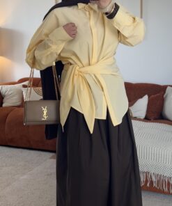 Chemise jaune lumineuse et tendance, parfaite pour un look chic et moderne. Son design permet de la nouer à l’avant pour une silhouette stylée ou de la porter simplement droite.