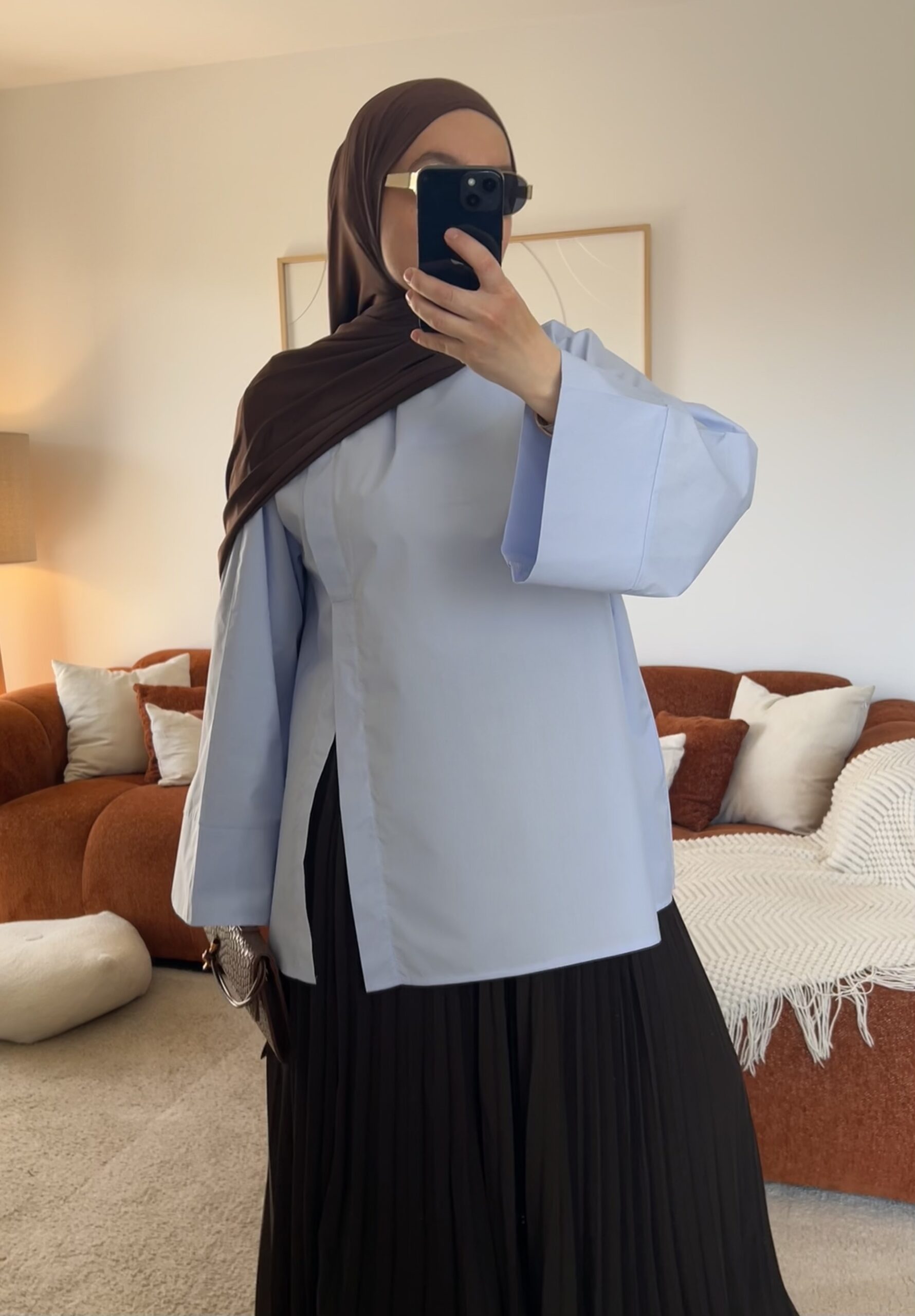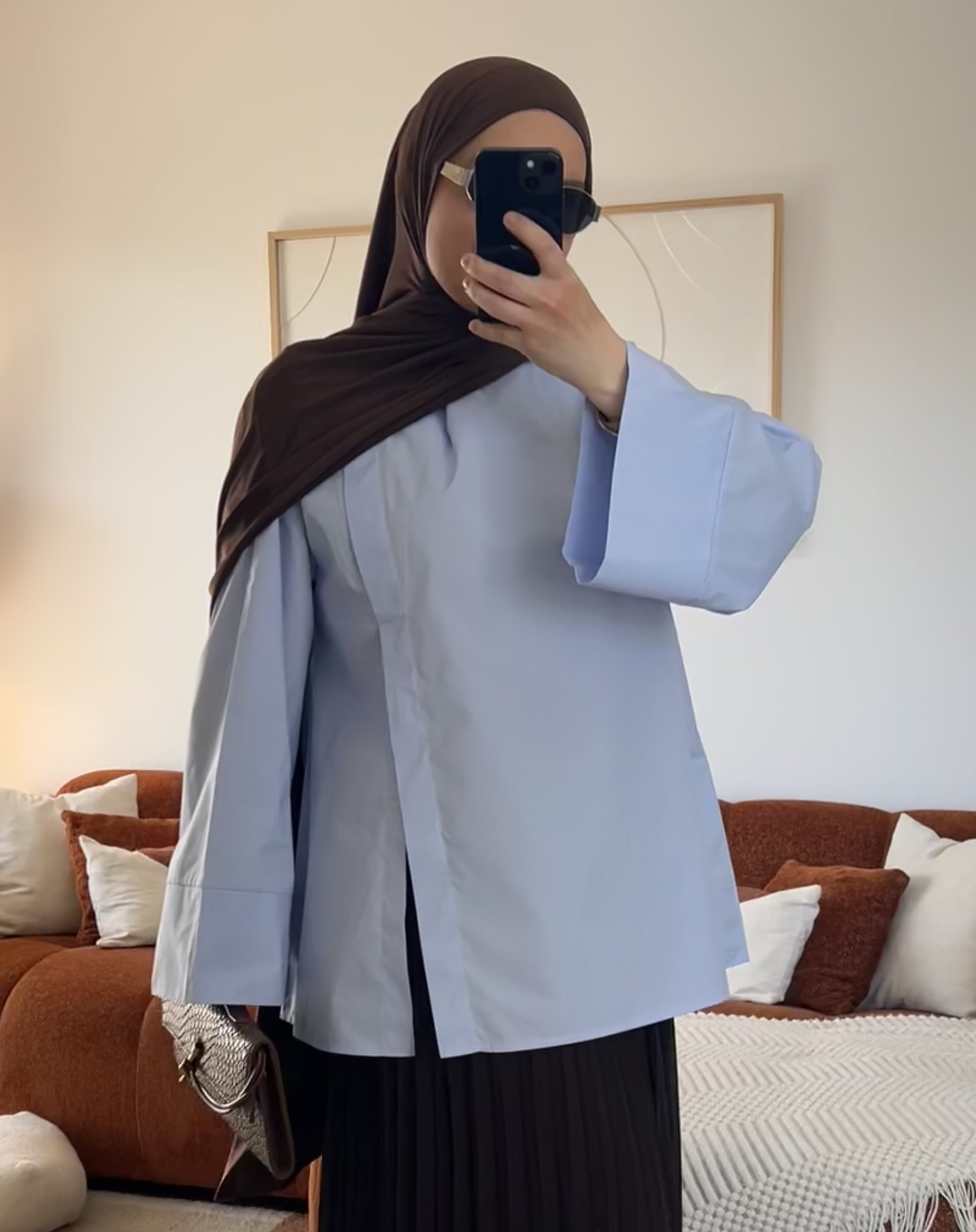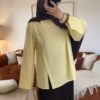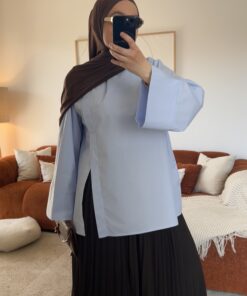 Sa coupe oversize apporte une silhouette moderne et fluide, idéale pour un style chic et minimaliste. La fente sur le côté ajoute une touche raffinée et permet un joli tombé lorsqu’elle est portée avec une jupe ou un pantalon.