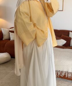 Polyvalente, cette chemise s’adapte à tous les styles : portée avec une jupe pour une allure féminine, au-dessus d’une robe pour un look superposé tendance, ou encore ouverte sur un t-shirt blanc (comme celui de notre collection à dentelle) pour un esprit plus casual. Elle peut aussi se porter fermée pour un rendu plus structuré.