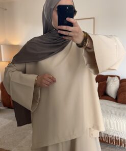 Avec l’ensemble Zineb, nous avons voulu rendre la modest fashion accessible à toutes en proposant une pièce de qualité premium, au design minimaliste et intemporel. Pensé pour s’adapter à toutes les morphologies et se porter en toute saison, il est actuellement disponible en trois coloris : marron, taupe et gris.