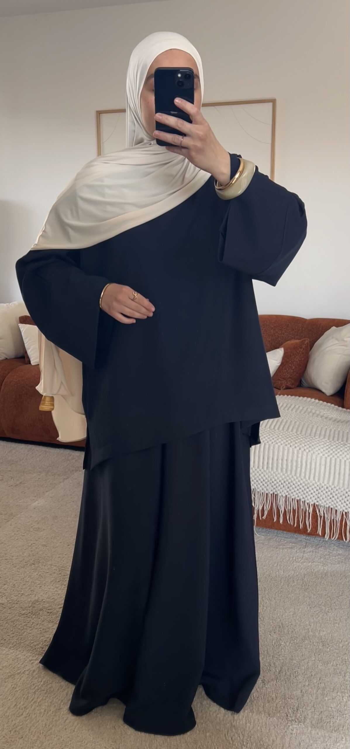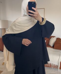 L’ensemble Zineb est une pièce incontournable alliant confort et modernité. Composé de deux pièces, il se distingue par une jupe longue évasée d’environ 105 cm et une tunique ample au tombé fluide, légèrement plus longue à l’arrière pour une silhouette harmonieuse et raffinée.