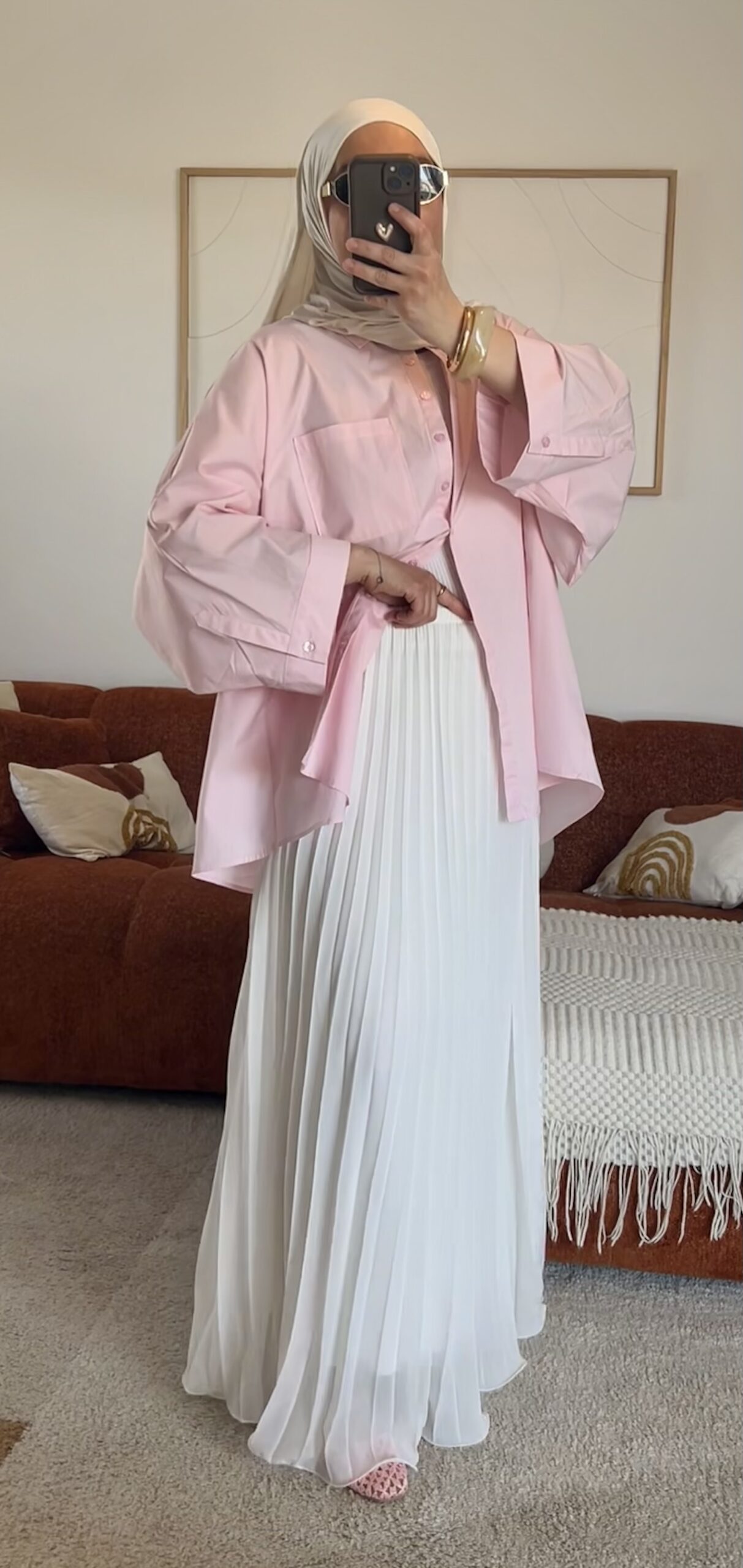 Élégante et intemporelle, cette jupe longue plissée en mousseline séduit par sa matière légère et son tombé délicatement vaporeux. Son plissé apporte du mouvement et de la fluidité à la silhouette. .