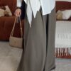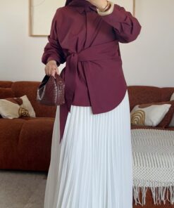 Polyvalente, elle se porte aussi bien avec un pull, une blouse ou une chemise pour un look chic et moderne. Sur les photos, elle est associée au blazer de notre collection.