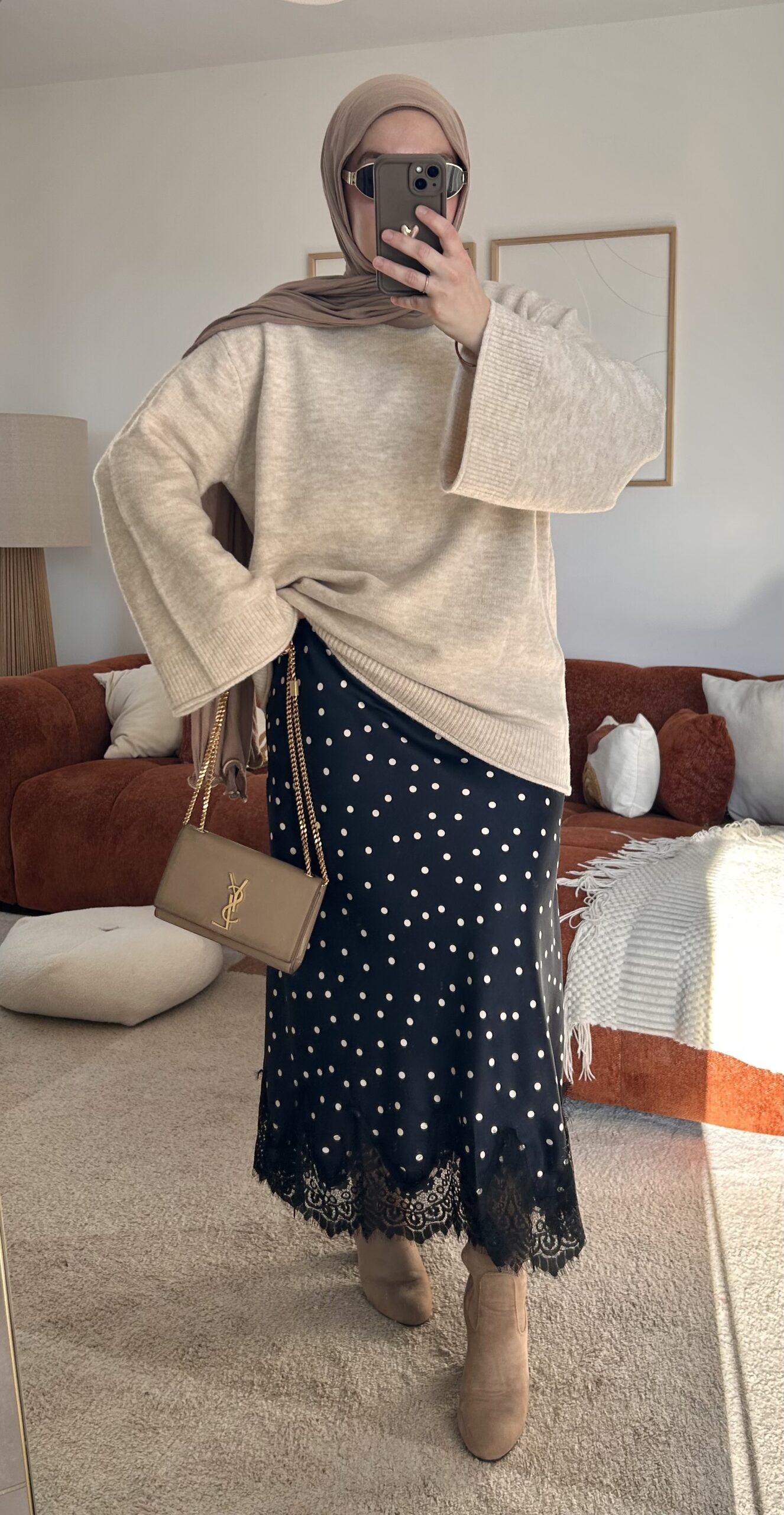 Le tissu satiné apporte un tombé élégant et facile à associer à différents styles, du quotidien aux occasions plus habillées. La petite bande en dentelle sur la jupe ajoute une touche tendance.
