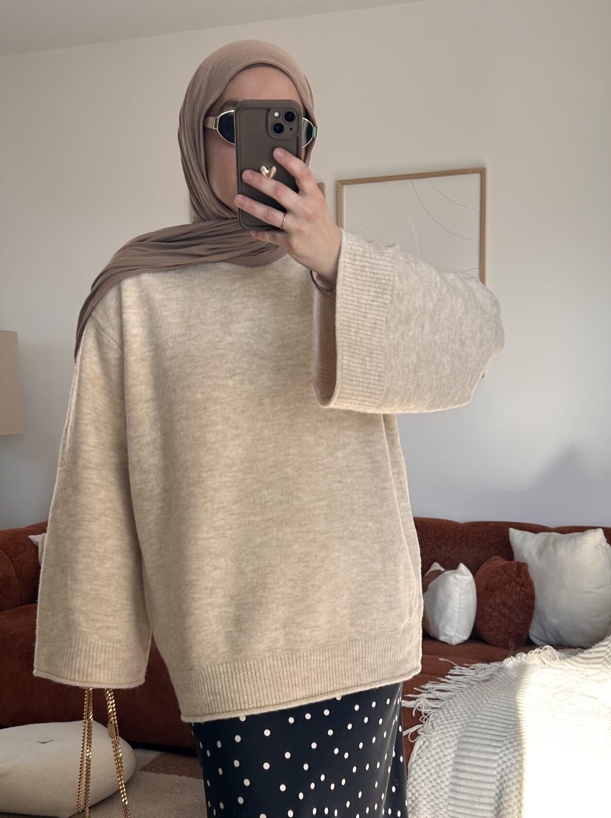 Sa coupe confortable permet de l’associer facilement à un pantalon pour un style décontracté ou à une jupe pour une allure plus féminine et élégante. Intemporel et tendance, ce pull s’intègre parfaitement dans une garde-robe modest fashion.